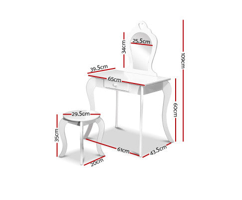 Kids Dressing Table Stool Set Vanity Mirror Princess Children Makeup White