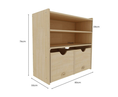 Kids 2 Shelf Storage Cabinet with Pull Out Drawers - H76cm