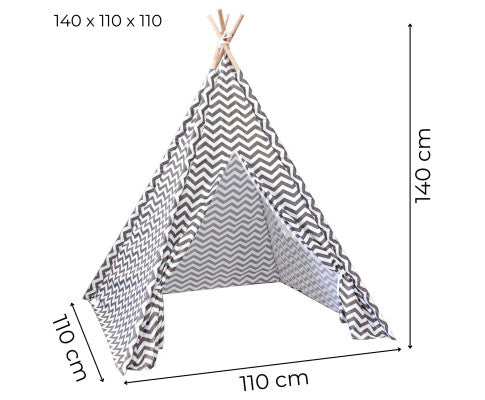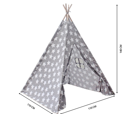 Kids Teepee Tent with Side Window and Carry Case (Grey Star)