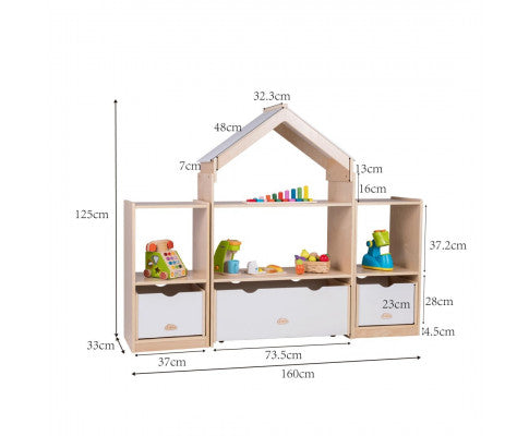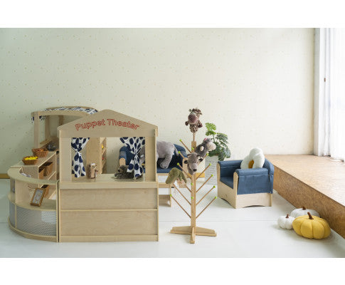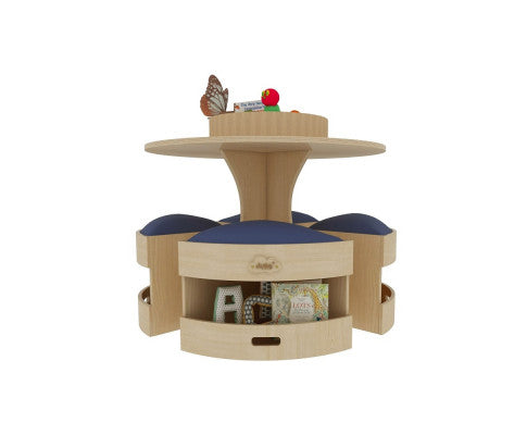 Round Wooden Table with Storage Stools Blue - Set Of 5
