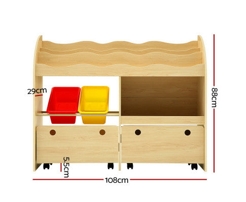 Kids 2 Shelf Storage Cabinet with Pull Out Drawers - H76cm