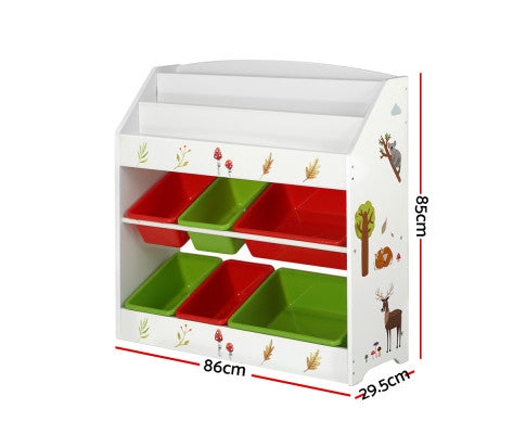 3 Tiers Kids Bookshelf Storage Children Bookcase Toy Box Organiser Rack 6 Bins