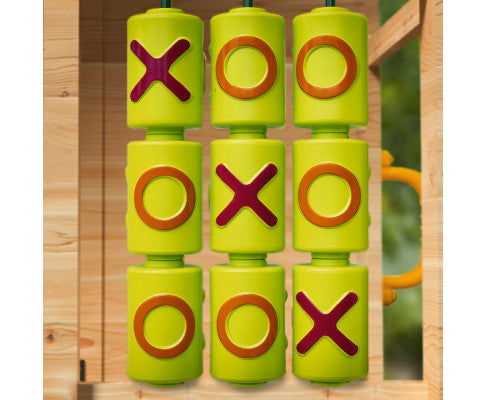 Wooden Tower Cubby House with Slide, Sandpit, Climbing Wall, Noughts & Crosses