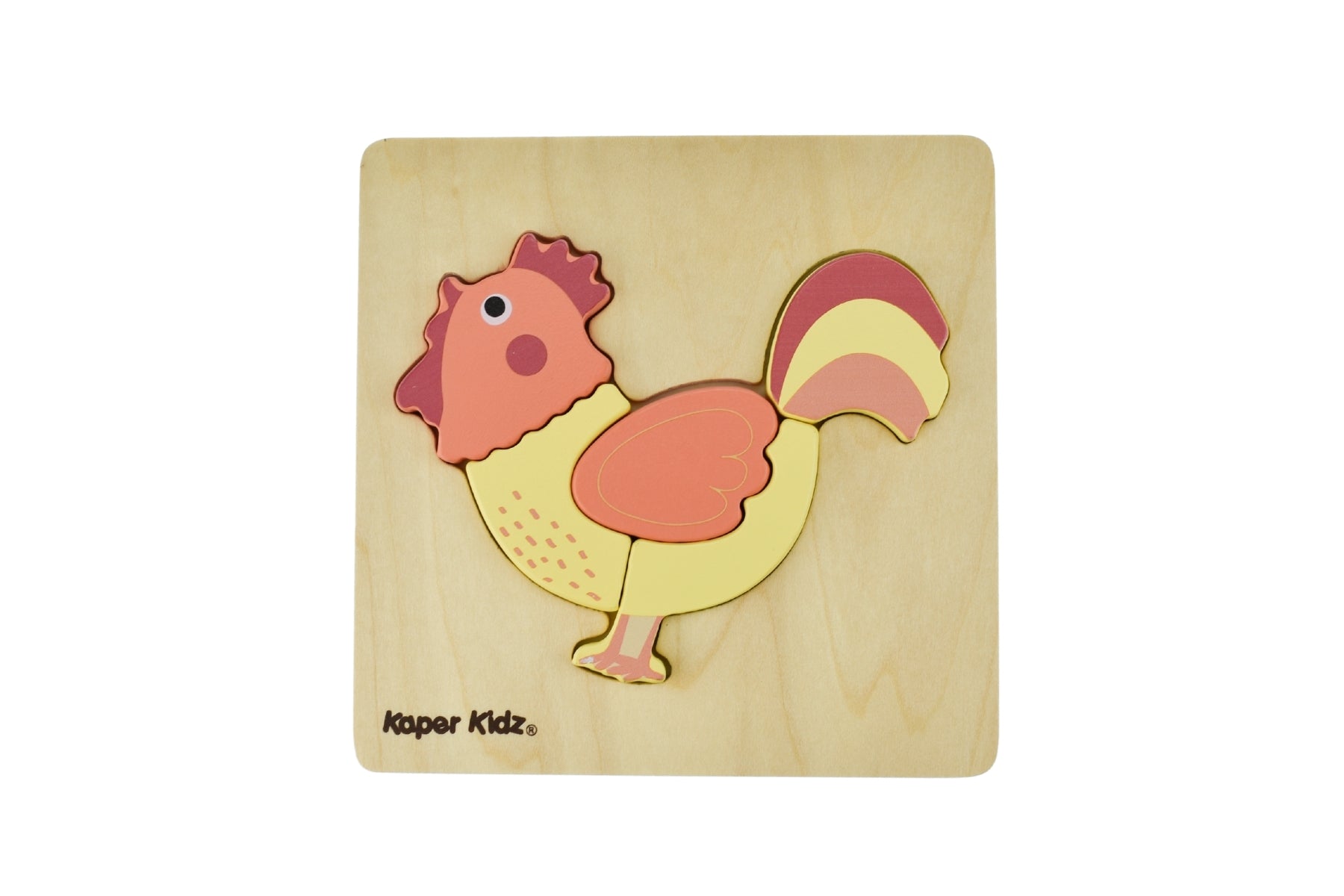 Introducing the Basic Rooster Chunky Puzzle by Kaper Kidz, with generously sized, simple pieces. Tailored for beginners, this puzzle serves as an ideal tool to enhance fine motor skills. Crafted with non-toxic paint, it ensures a safe and engaging learning experience. Perfect for outings, this well-made puzzle offers a smooth tactile experience, making it an excellent educational tool for identifying and learning about farm animals.