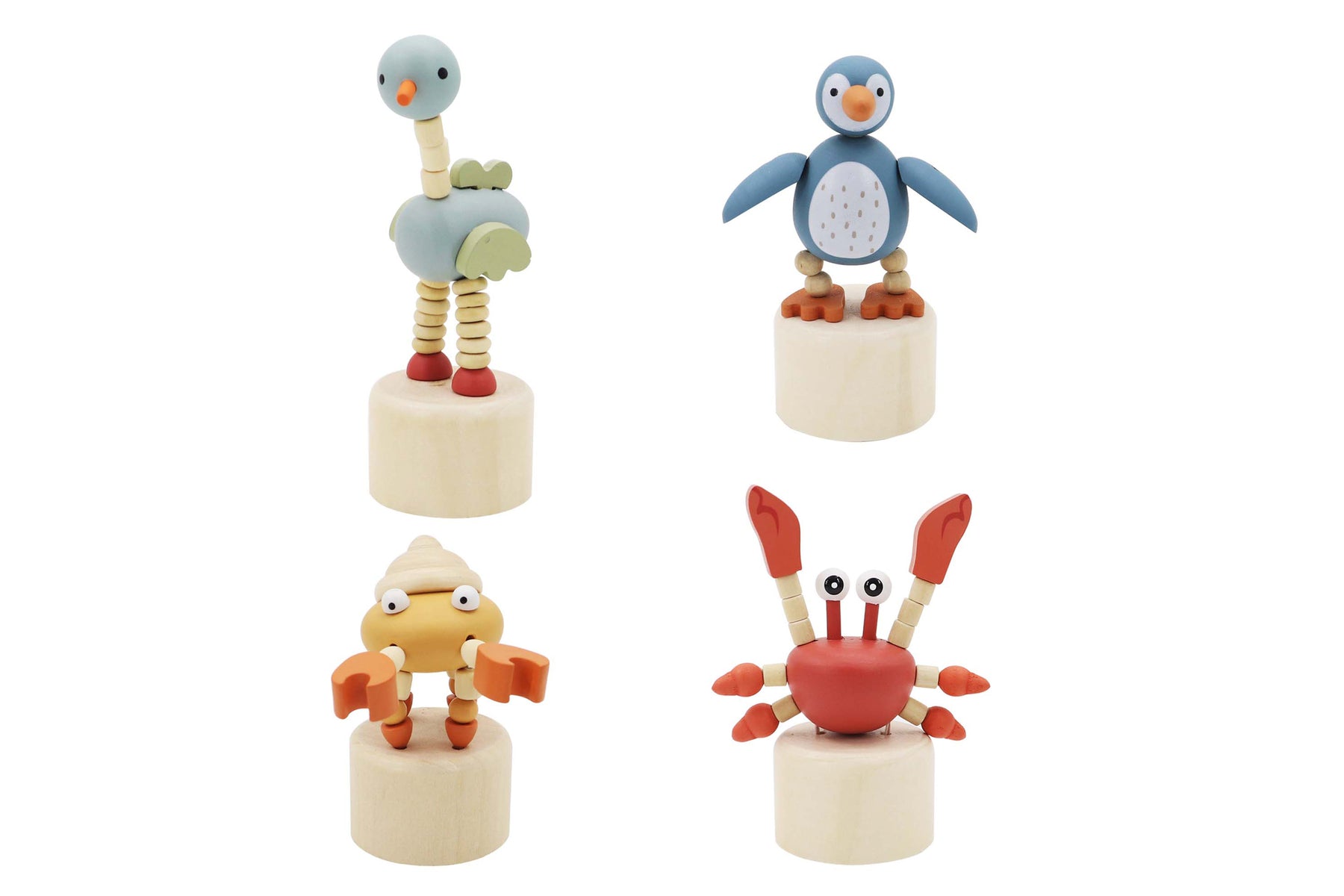 A set of wooden figurines that will bring joy and imagination to your child's playtime. This delightful collection features four different styles of sea creatures, all beautifully crafted from high-quality wood. Each figurine is carefully designed with movable joints, allowing them to dance and sway as if they were gliding through the ocean waves.