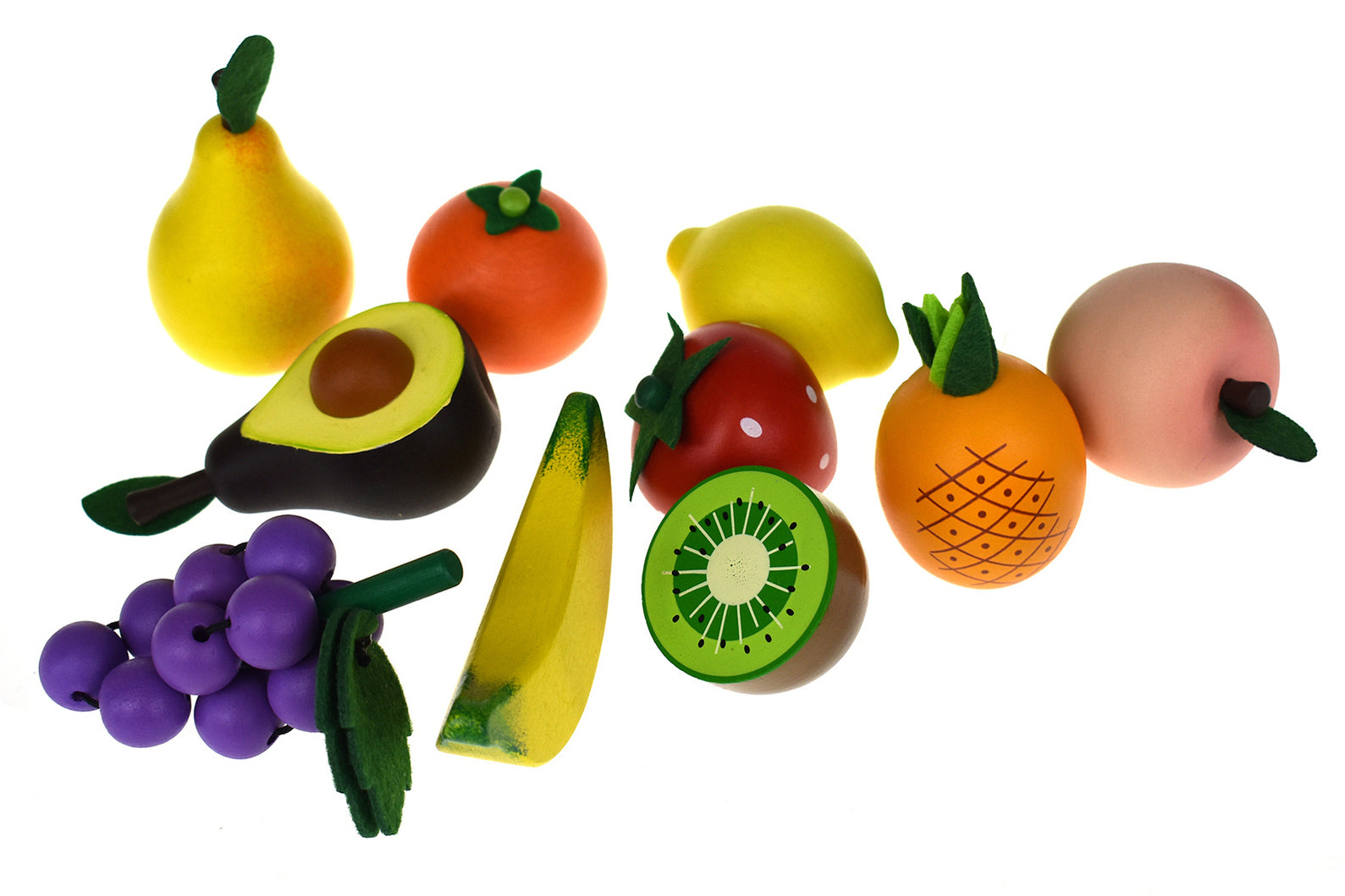 WOODEN FRUITS 10-PC SET WITH WOODEN CRATE
