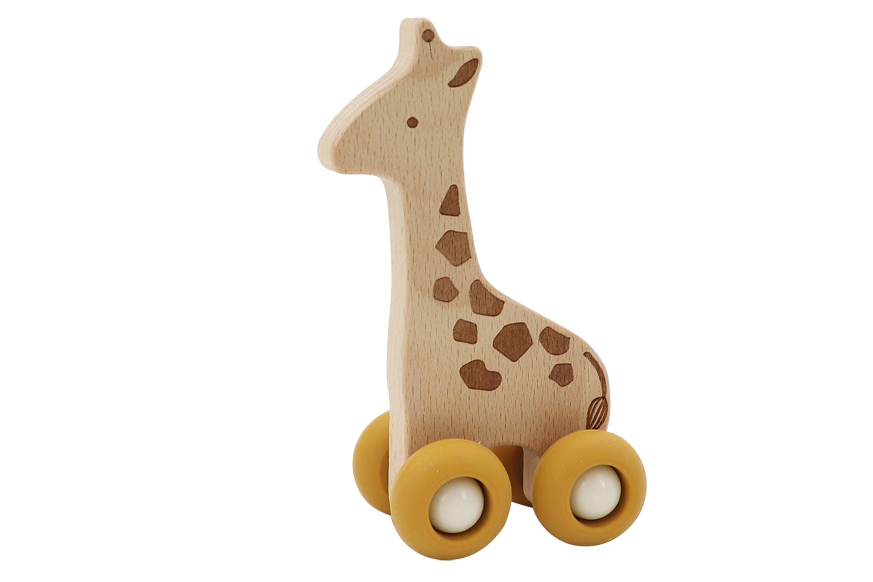 WOODEN GIRAFFE WITH SILICONE WHEELS